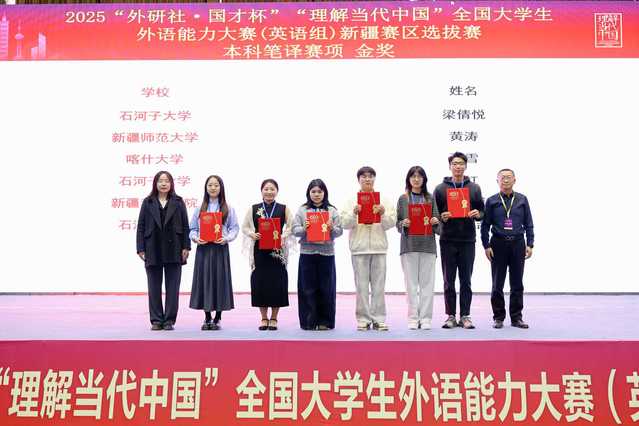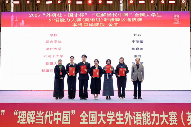 来自石河子大学的梁倩悦等6人获本科笔译赛项金奖、10人获银奖、13人获铜奖、3人获优胜奖。