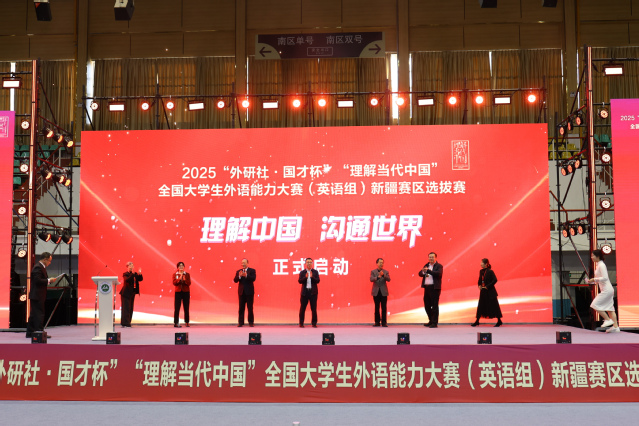 11月1日至2日,由新疆维吾尔自治区教育厅、兵团教育局主办,石河子大学承办的2025年“外研社·国才杯”“理解当代中国”全国大学生外语能力大赛(英语组)新疆赛区选拔赛在我校圆满落幕。教育部高等学校外国语言文学类专业教学指导委员会主任委员孙有中,新疆生产建设兵团教育局党组成员、副局长赵首辰,石河子大学党委副书记、校长李兆敏,新疆高校外语教学研究会会长曹湘洪参加大赛并致辞。