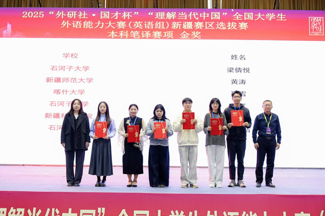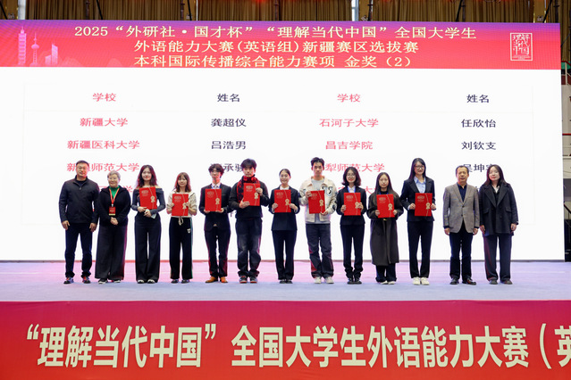 11月2日,由新疆维吾尔自治区教育厅与兵团教育局联合主办、石河子大学承办的2025“外研社·国才杯”“理解当代中国”全国大学生外语能力大赛(英语组)新疆赛区选拔赛圆满落幕。作为承办单位,我校将讲好新疆故事,服务地方国际传播作为重要使命,聚焦“以语言为载体传播中国声音”,推动语言教育与国情教育、国际传播实践深度融合,打造具有中国特色、世界眼光的人才培养平台,引导广大青年用融通中外的语言,讲好中国故事,讲好新疆故事。